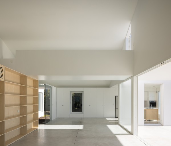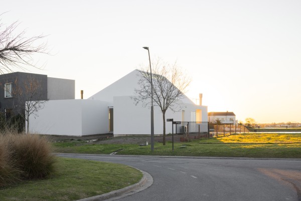 Una vivienda - bloque murario con perforaciones, horadada para propiciar que cada lugar tenga una cualidad material/ espacial particular. La primera operación considera descomprimir a través de patios con características diferentes según la relación entre lugares : patios con paredes y sin cubierta, entrantes del paisaje que separan volúmenes y semicubiertos contenidos por muros. Por otro lado, los espacios de mayor intimidad y resguardo se comportan como cápsulas independientes organizadas de forma que puedan tener, incluso al estar más alejadas, las visuales hacia la mejor orientación. Las habitaciones comparten un espacio de guardado genérico que se adosa al bloque independiente, (contenedor de escalera, baño y biblioteca) exento, rodeable. Otra premisa/operación consiste en la posibilidad de crecimiento a futuro. La propuesta permite que esa extensión se realice sin modificar ninguna cubierta ni crecer en altura. Un crecimiento - completamiento imperceptible desde el exterior para que la transformación se habite desde la experiencia interna. Una pasarela que hoy conduce a la terraza accesible se prevee estirar como una plataforma - bandeja que componga un nuevo espacio en altura y de todos modos permita ( no sin variaciones espaciales ) que la luz natural del techo siga ingresando al interior.